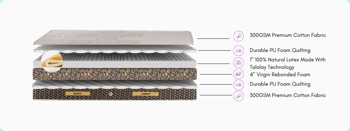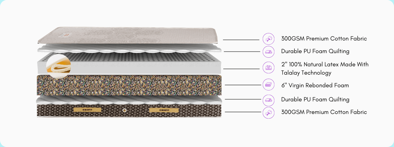 Developed with the help of Indonesian Talalay technology, the organic latex layer makes this mattress environmentally friendly, hypoallergenic, and dust mite resistant. A notch above other latex mattresses in India, this latex mattress is the perfect hybrid of elasticity, breathability, comfort, and an impressive lifespan.
